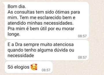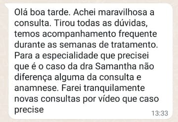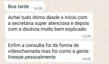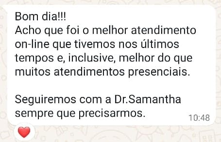 Veja o que algumas (das milhares de mães atendidas) falam sobre a consulta por vídeochamada da Dra. Samantha Dickel.