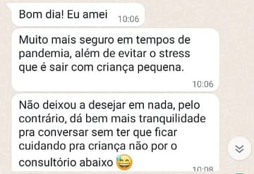 Independente da consulta ser feita presencialmente em consultório, ou através de uma vídeochamada, a avaliação, diagnóstico, tratamento e acompanhamento do seu filho(a), são realizados da mesma maneira.